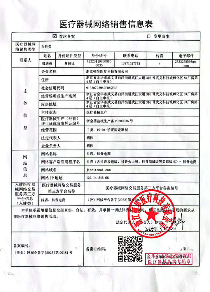 Copyright:浙江頓昊醫(yī)療有限公司 浙ICP備2021002977號 浙公網(wǎng)安備33072302100406號 浙網(wǎng)藥信備字〔2025〕00031 號 技術(shù)支持:跨海網(wǎng)絡(luò) 網(wǎng)站地圖 xml地圖 |